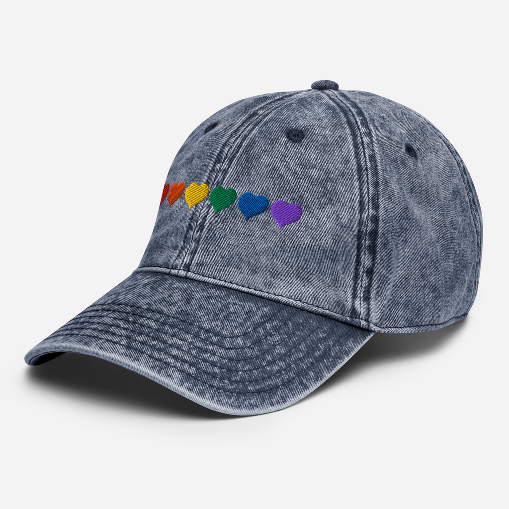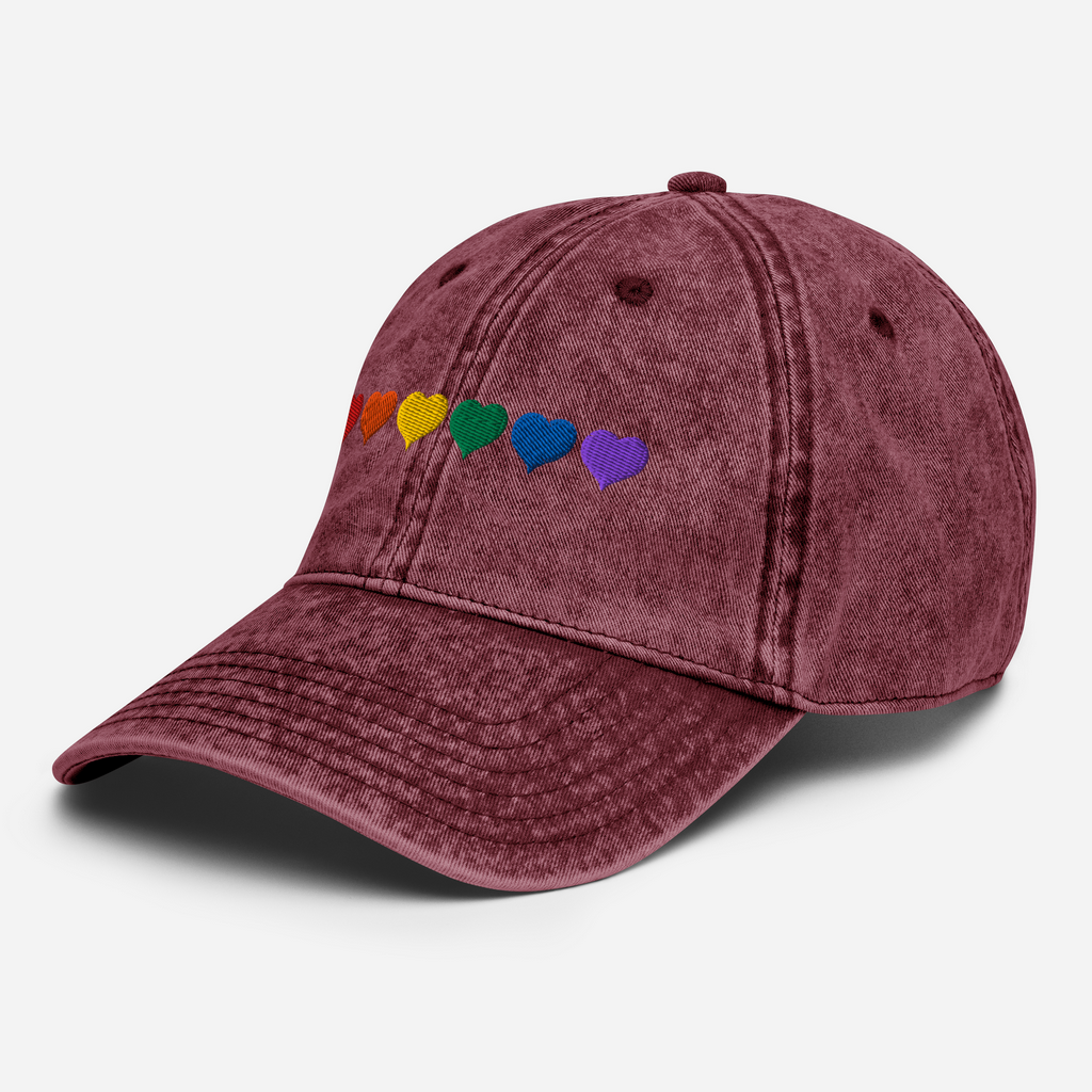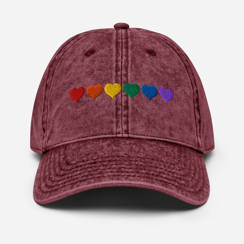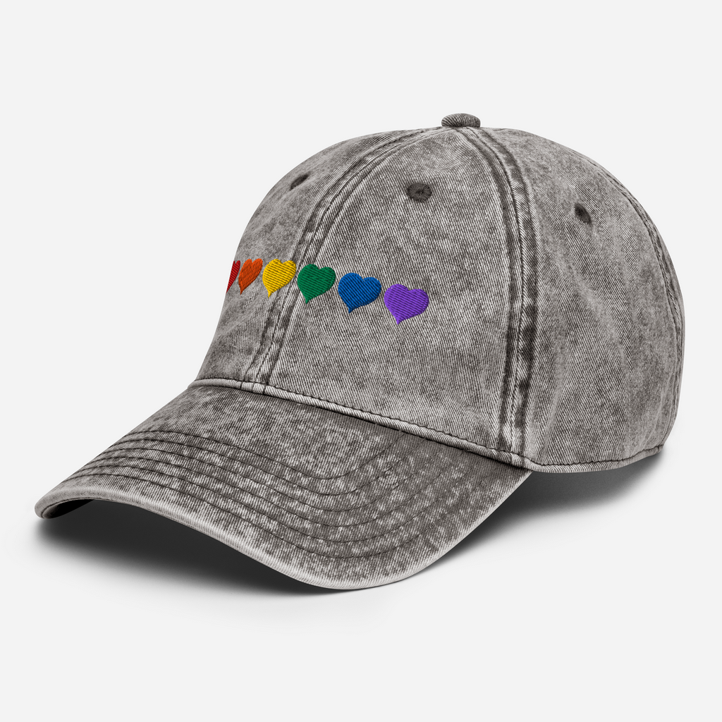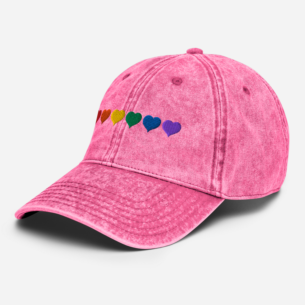 SOMBRERO VINTAGE CORAZONES ARCOÍRIS - BORDADO MULTICOLOR